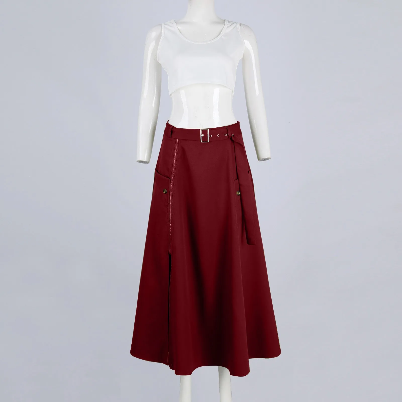 Women’s Fashion Casual Solid Color Vest Skirt Long Skirt Set