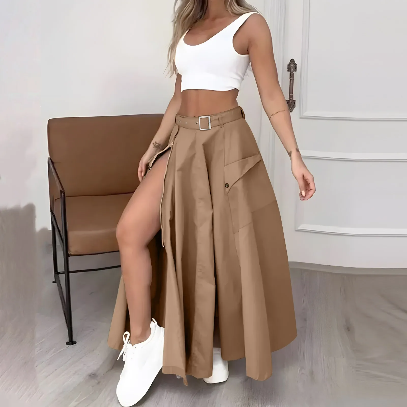 Women’s Fashion Casual Solid Color Vest Skirt Long Skirt Set