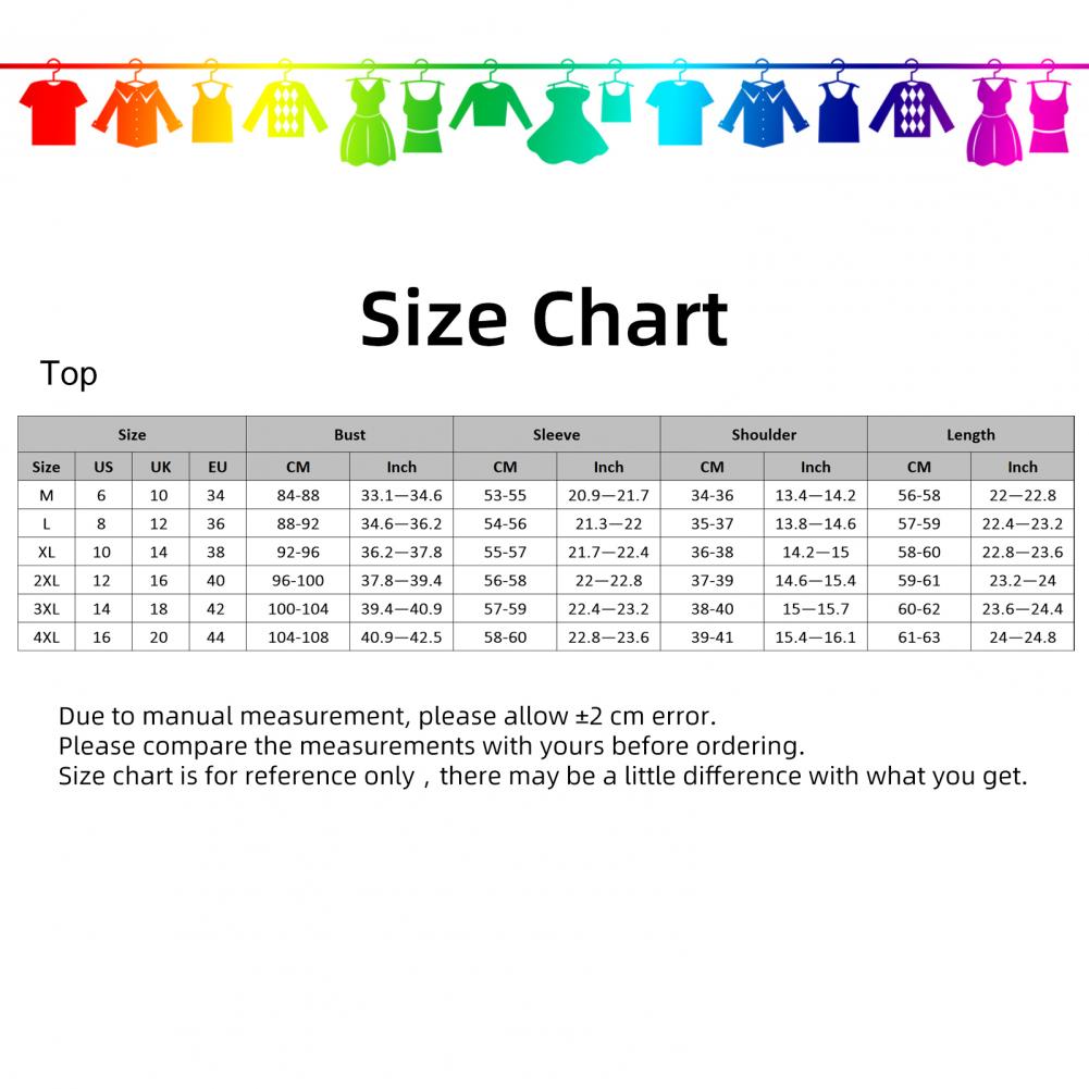 Size: 3XL, Length: 60cm-62cm/23.6"-24.4", Shoulder: 38cm-40cm/15"-15.7", Bust: 100cm-104cm/39.4"-40.9", Sleeve: 57cm-59cm/22.4"-23.2" (Approx.)