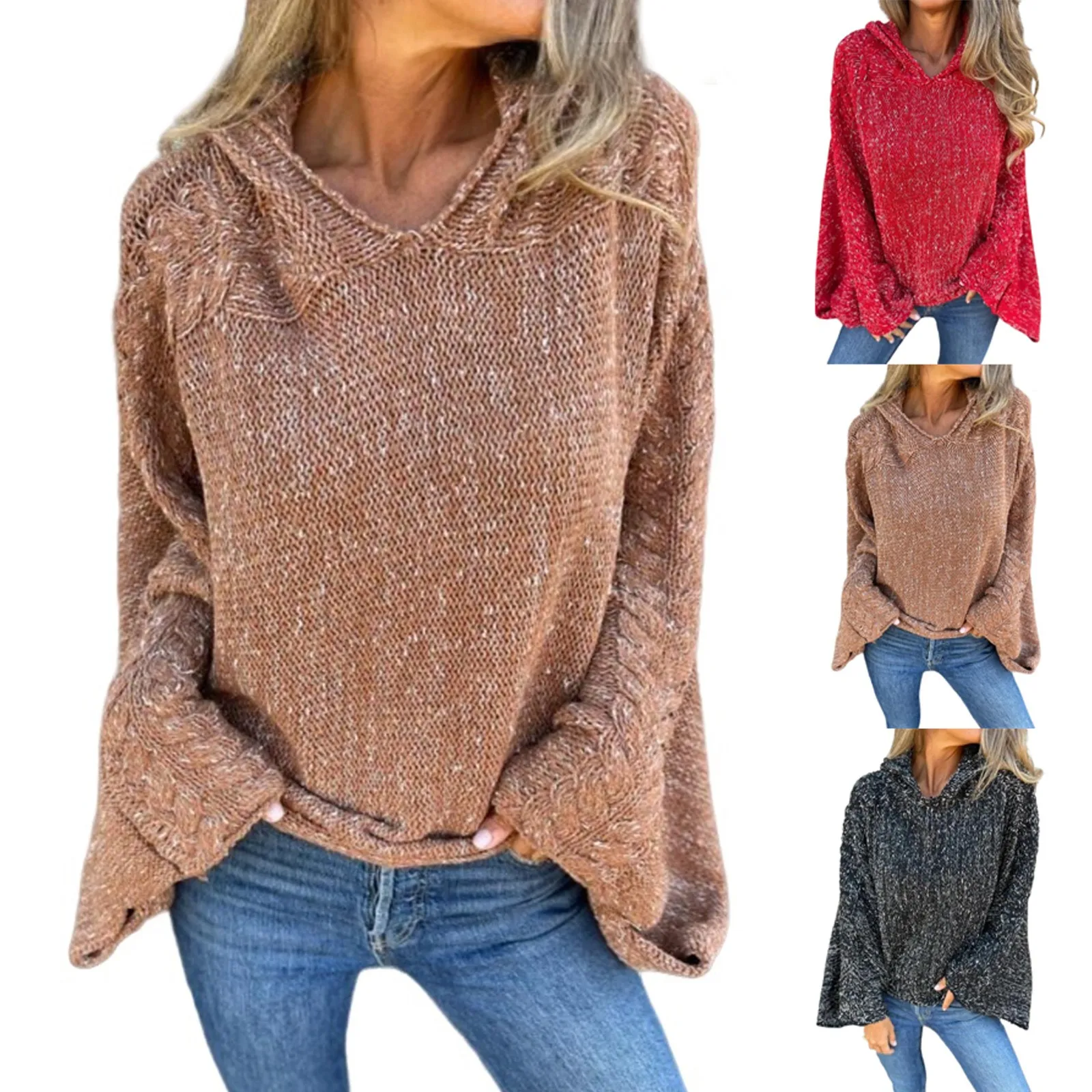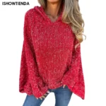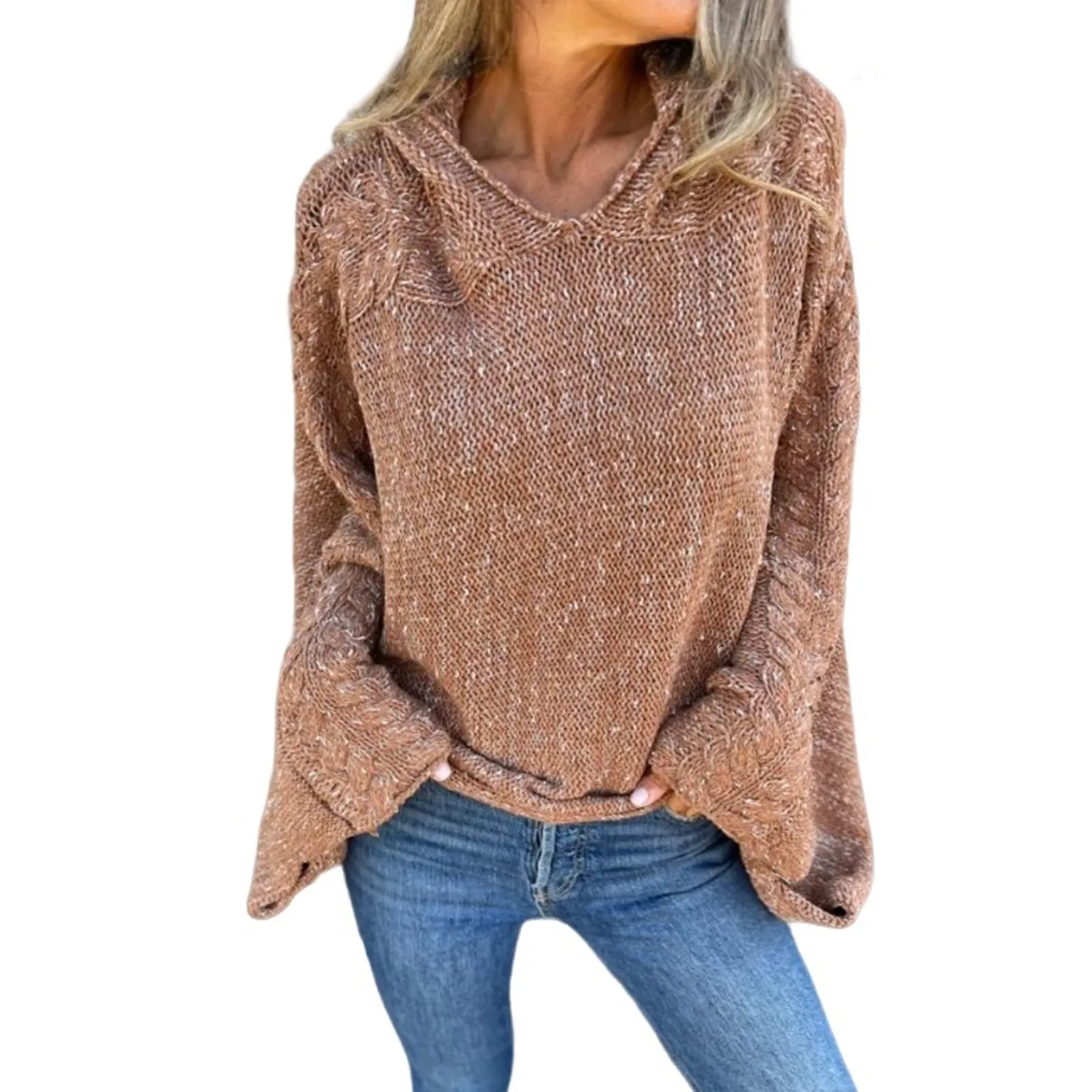 Women Long Sleeve Hooded Knit Cardigan Sweater Outwear Coat