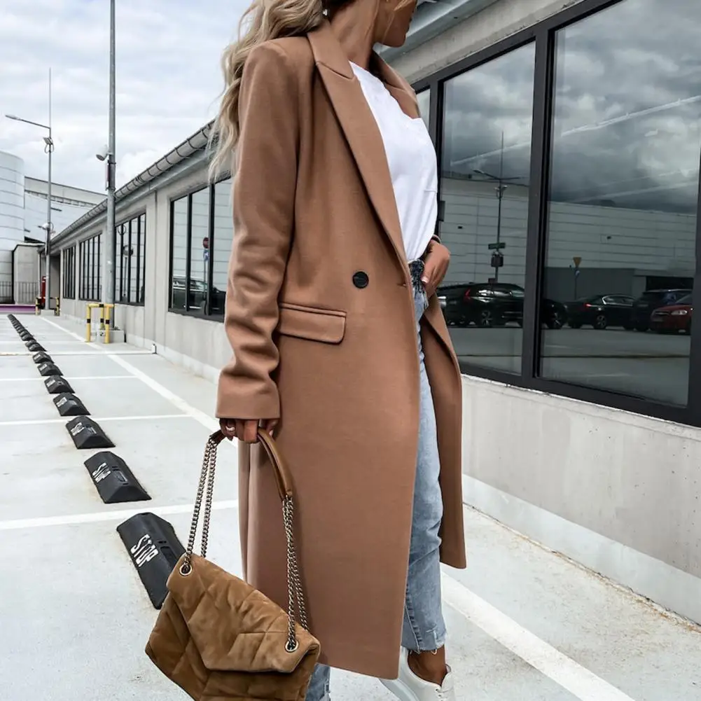 With the simple and solid color design, this coat is very versatile. Having the suit collar design, it can be added a sense of formality.