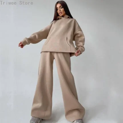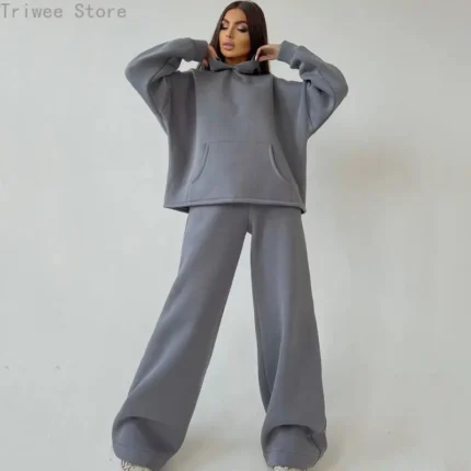 2024 Casual Women’s Plus-size Suit Solid Color Sports Hoodie Loose Female’s Wear Pants Sets Autumn Winter Two Piece Sets