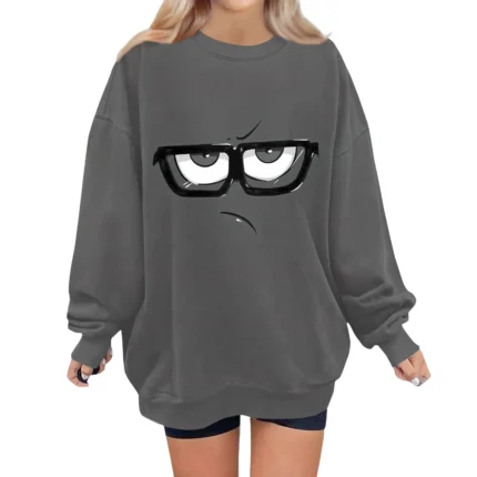 Women’s Expression Print Pullover Round Neck Drop Shoulder Long Sleeve Sweatshirt