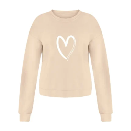Women Solid Color Love Heart Print Sweatshirts Ovesize y2k Long Sleeve Crewneck Sportwear Hoodless Pullovers Autumn Warm Clothes